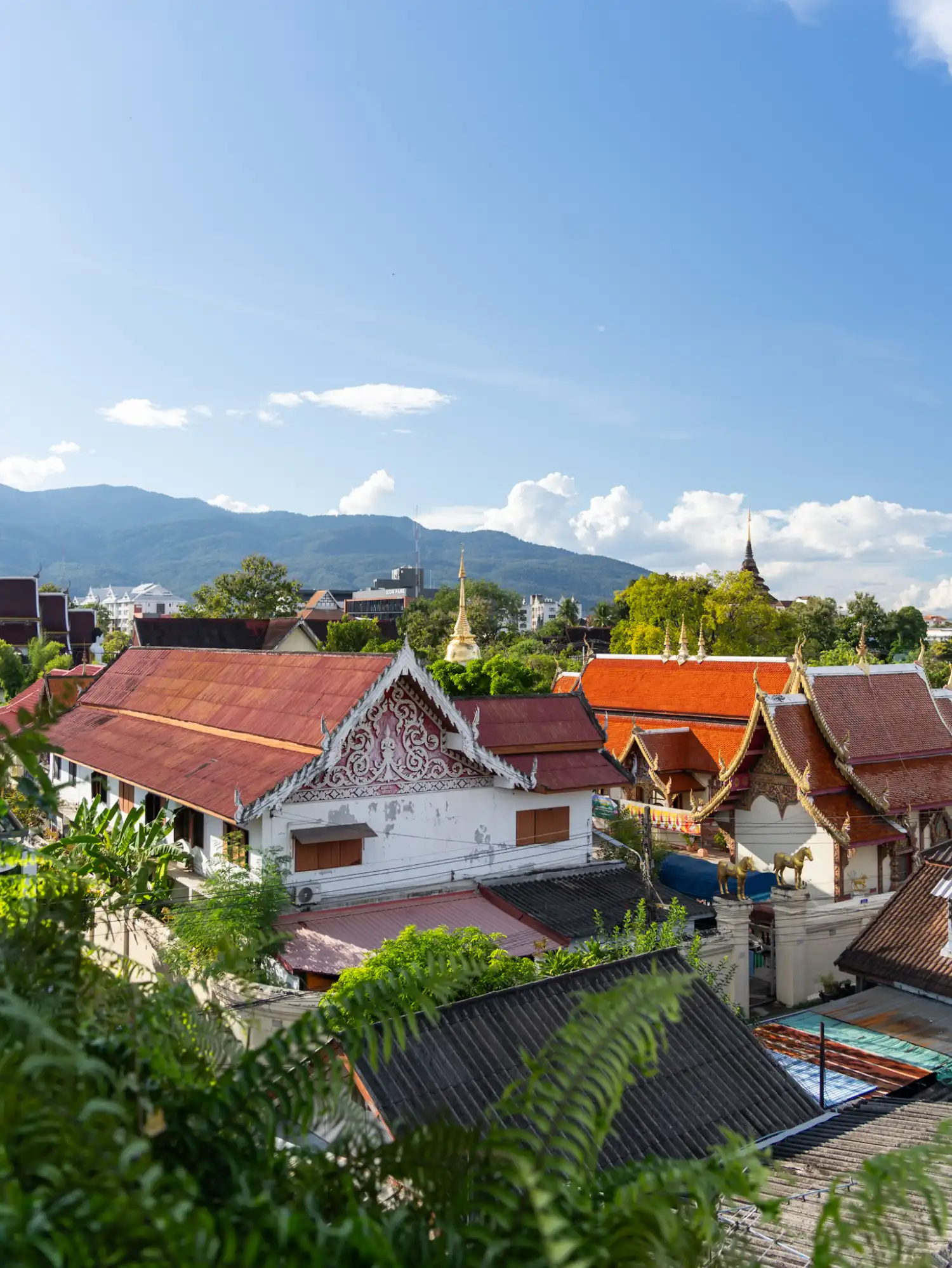 If you prefer to stay right inside the Old Town, Green Tiger House is another great choice. It's another fully vegan hotel in Chiang Mai is tucked away in the northern part of Old Town. It has more of a leafy garden atmosphere and a more social, guesthouse feel compared to the resort vibe of Away. From the rooftop terrace, you can look out over the nearby temples and even see the Doi Suthep mountain range in the distance, which is especially beautiful around sunset.