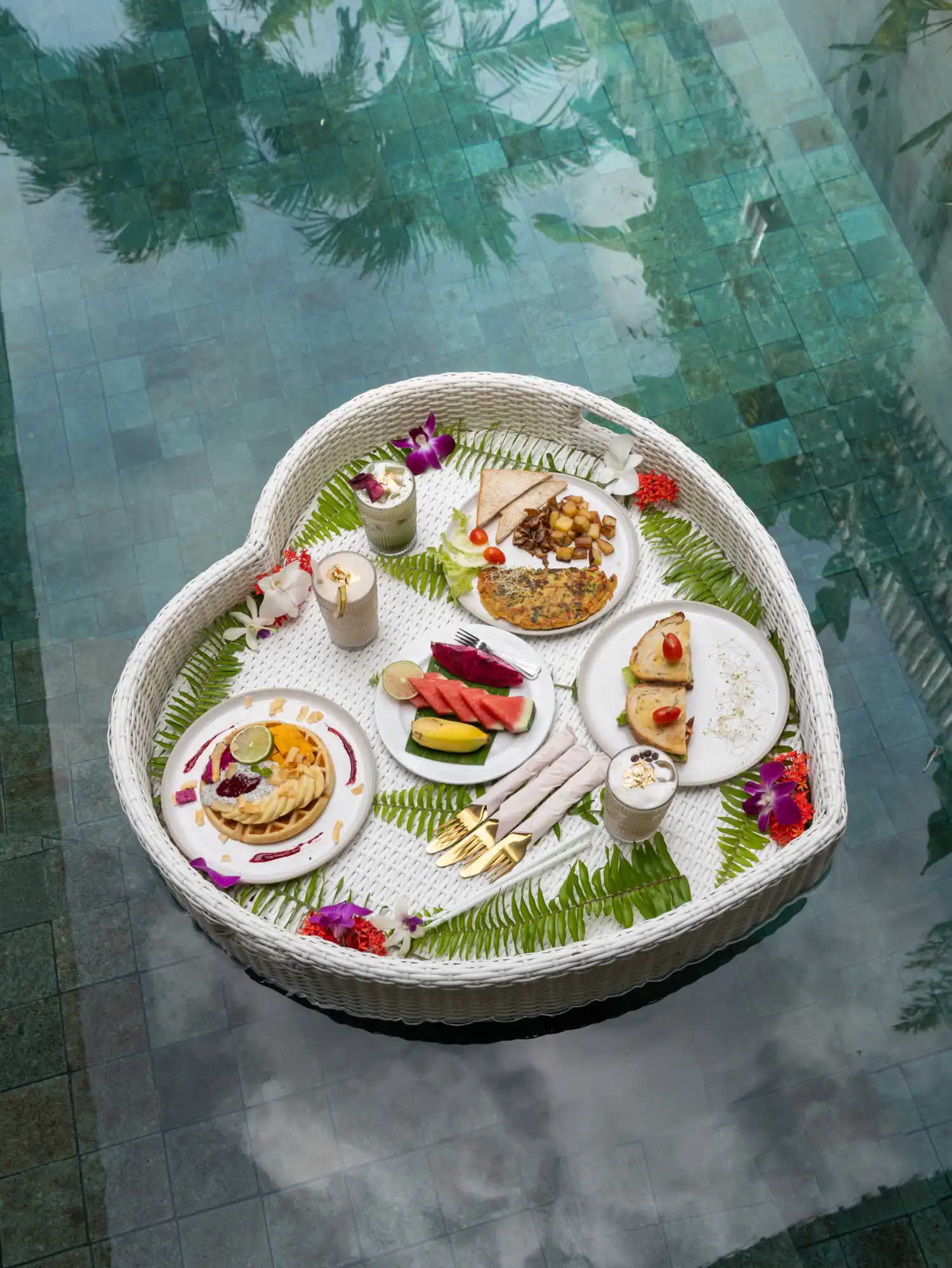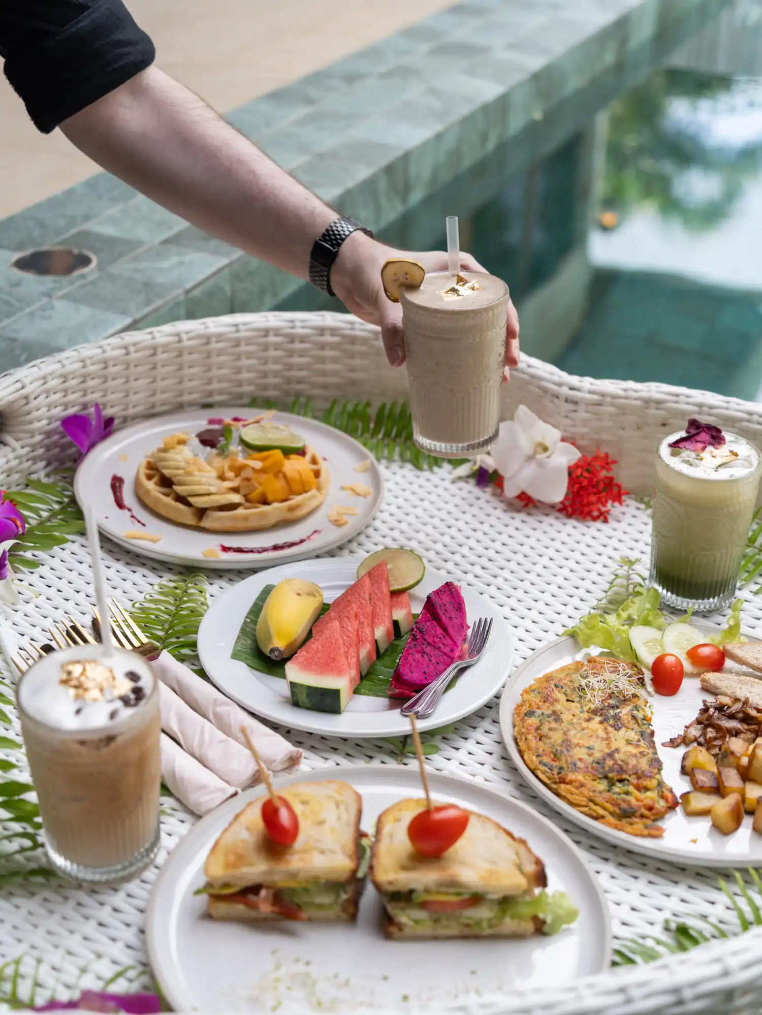 The on-site cafe serves everything from breakfast to dinner, but one of the most memorable experience I had was upgrading to a "floating breakfast", where they built a basket full of dishes and fresh fruits, and brought it to my private pool. For the complementary breakfast, you'll find everything from vegan omelettes and all-day breakfast, to waffles and smoothie bowls. The cafe also serves tasty dishes throughout the day, which means you don't have to leave the villa at all for a good vegan meal.