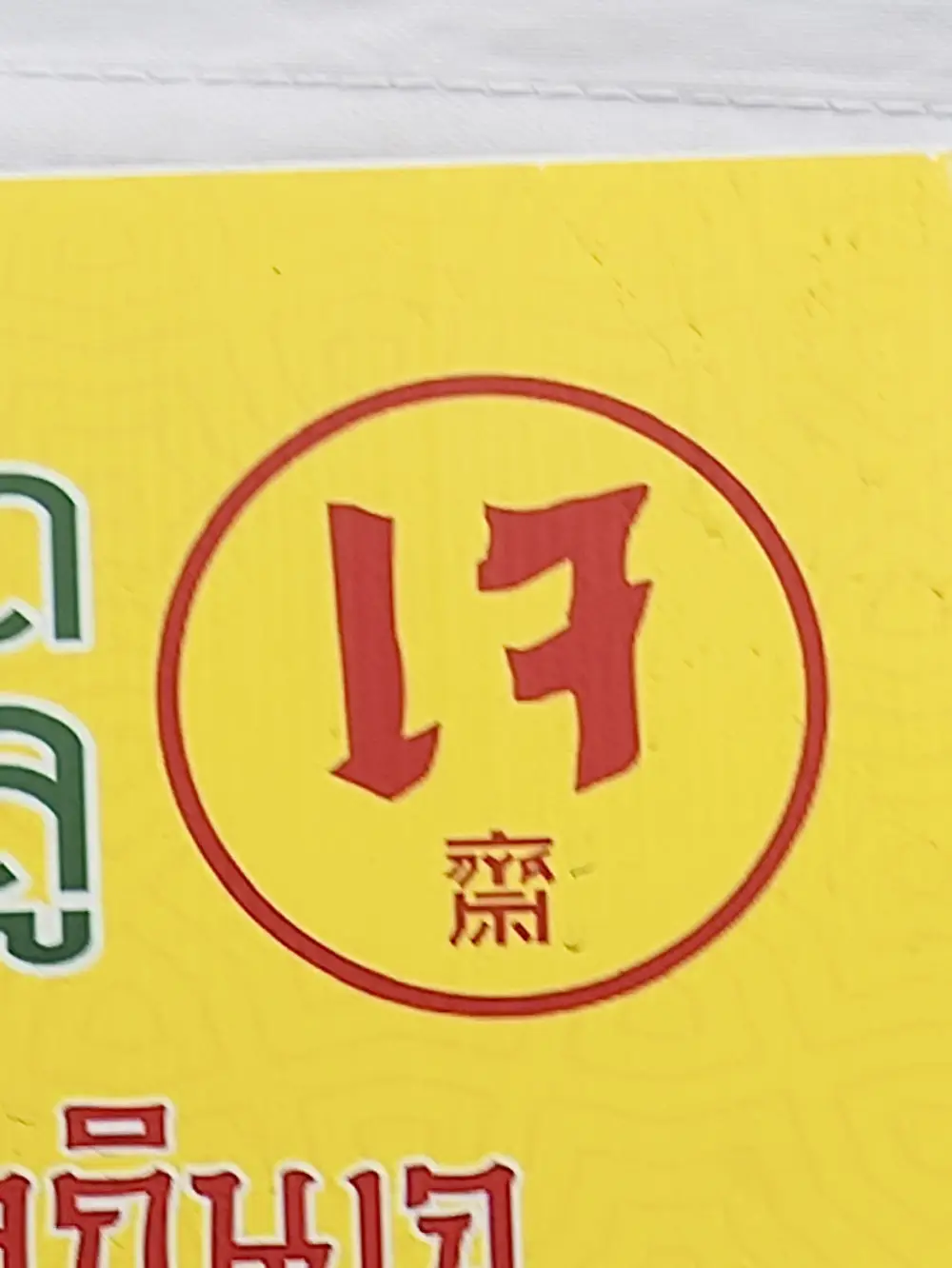 Finding vegan food in Thailand is easier thanks to the 'jay' symbol. Look for the bright yellow flags with the red Thai character "เจ" (which can look a bit like the number 17). If you see this flag on a stall, it means it has vegan-friendly food available. And if you see it on a product, that means the product is 'jay'- and vegan-friendly.