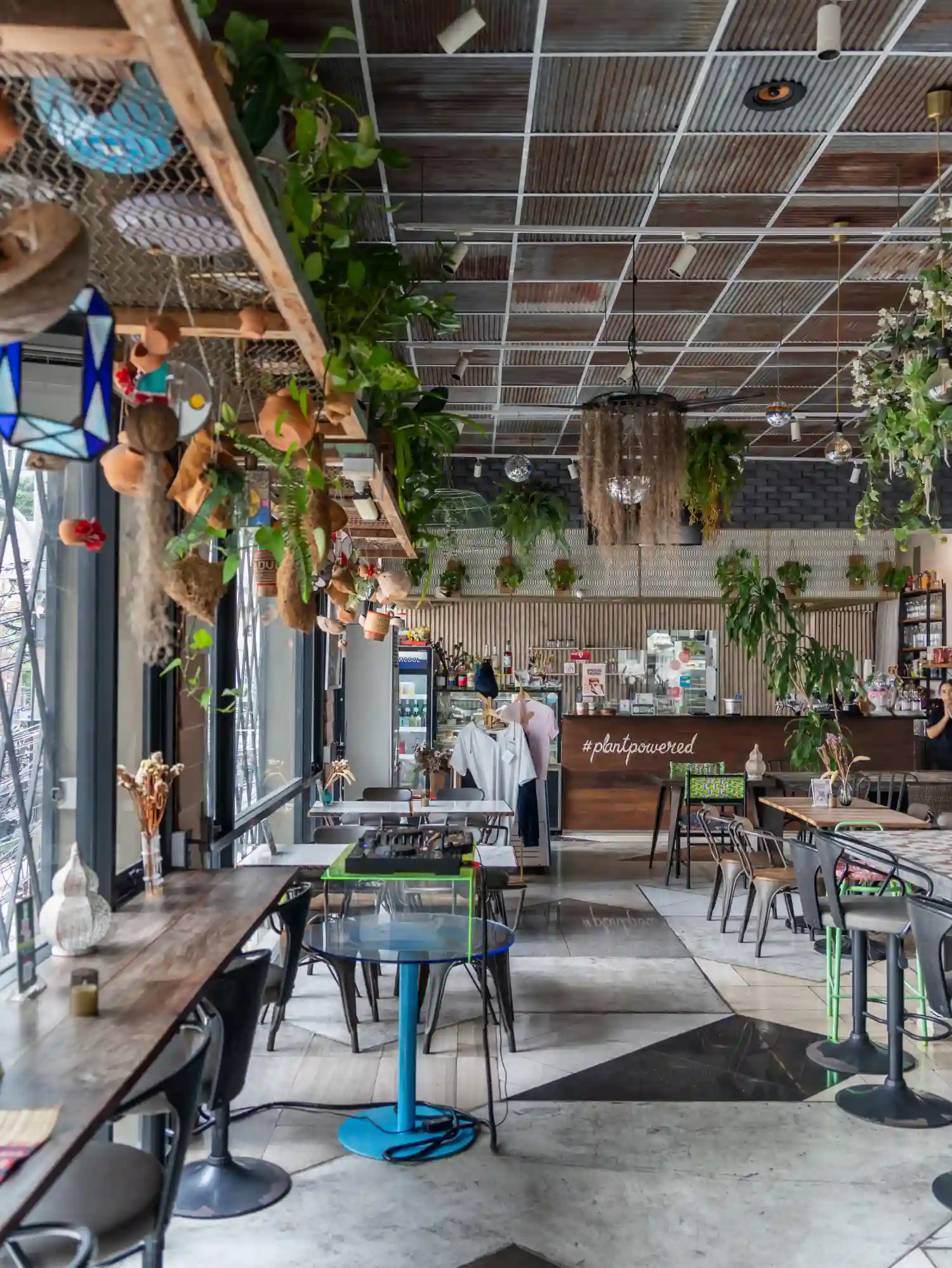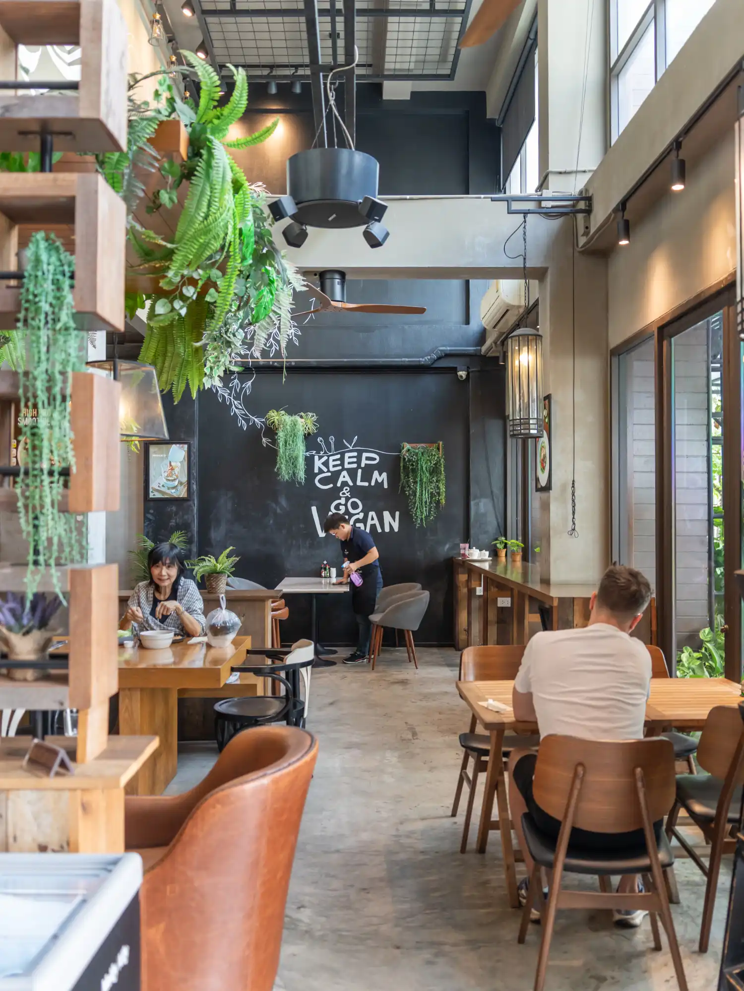 Tucked away on a side street in the bustling Sukhumvit nightlife area, Mercy Republic offers a moody, romantic atmosphere perfect for a date or a late-night bite. It serves as both a restaurant and a bar, with a menu full of interesting Thai fusion dishes that pack a punch, like the Tom Yum Goong pasta which is made with a fragrant Tom Yum sauce with vegan prawns, or the Penang curry rice with meaty, crispy katsu cutlet.