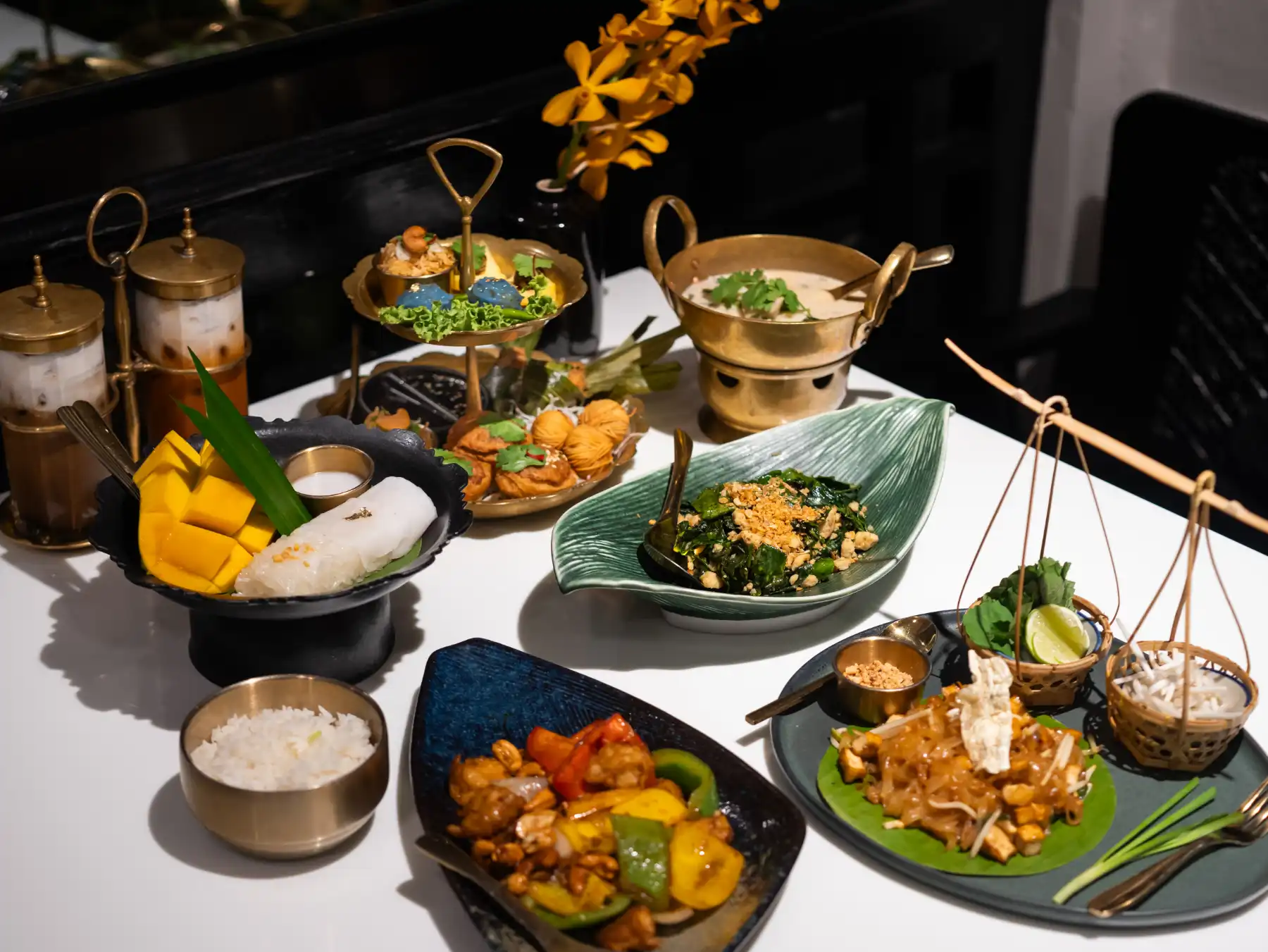 The dishes focus on perfecting traditional Thai cuisine. You'll find a big range of classic Thai dishes like Pad Thai and tom yum soup. I've tried a bit of everything, and the assorted appetiser platter is the best way to start in my opinion. It's a great way to sample a few of their starters including the beautiful blue flower dumplings. And for dessert, their elevated take on mango sticky rice - served with fresh coconut meat on top of creamy sticky rice - is arguably one of the best in the city.