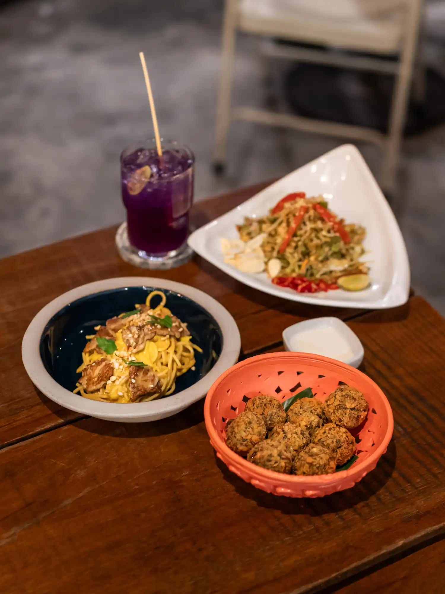 The menu is diverse, spanning Thai, Asian, and Western dishes. A unique highlight here is the Burmese tea leaf salad (Laphet thoke), which has umami flavours from fermented tea leaves with crunchy textures from roasted nuts. If you want something heartier, their veggie balls, which is made with broccoli, beetroot and quinoa, is also a solid choice.