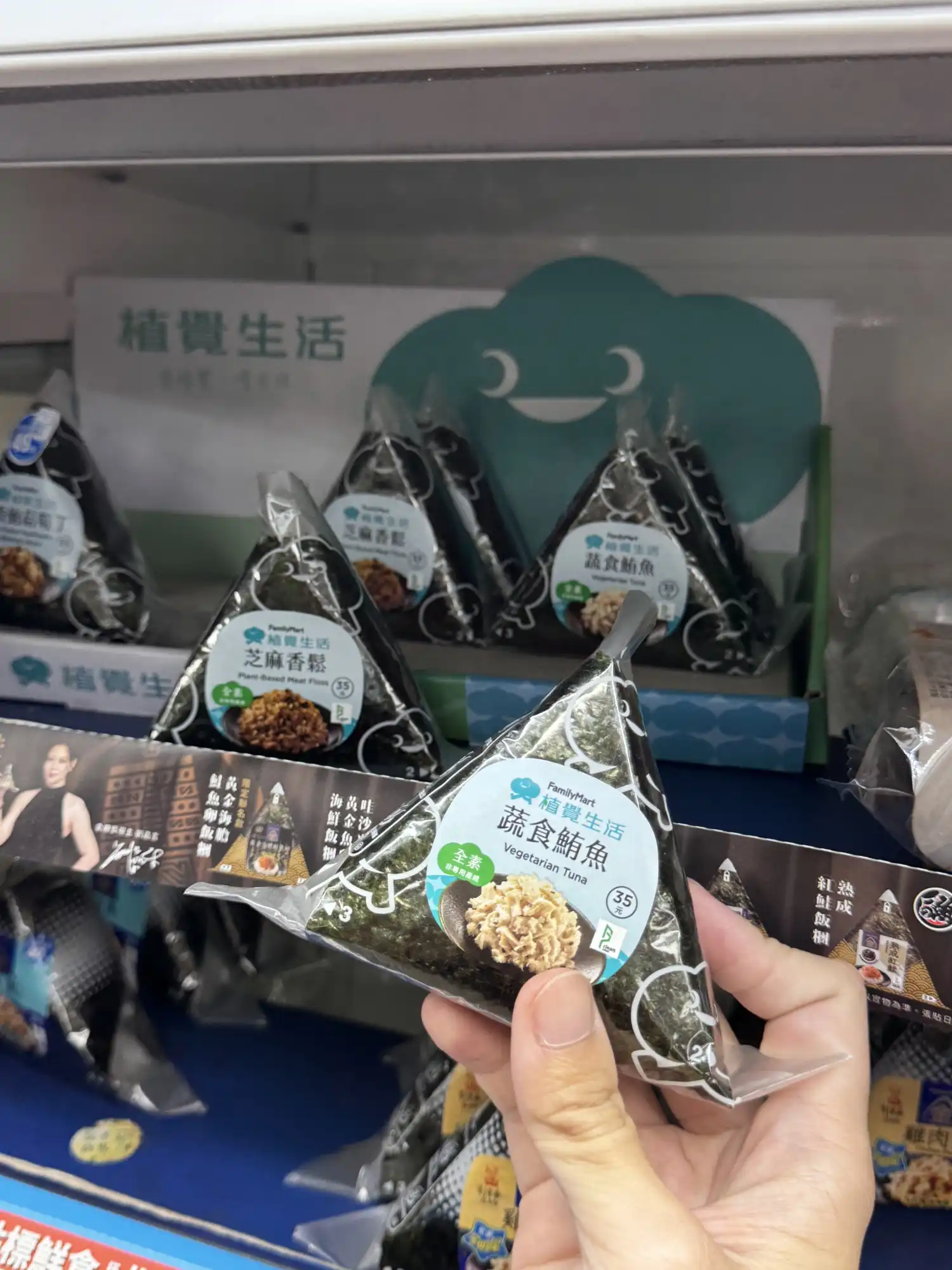 Family Mart is also very reliable for vegan food. Their dedicated veg line is called Zhi Jue Sheng Huo (植覺生活). While the selection might be slightly smaller than 7-Eleven, they have some excellent items like vegan onigiri (rice balls), cup noodles, and a big range of plan milk.