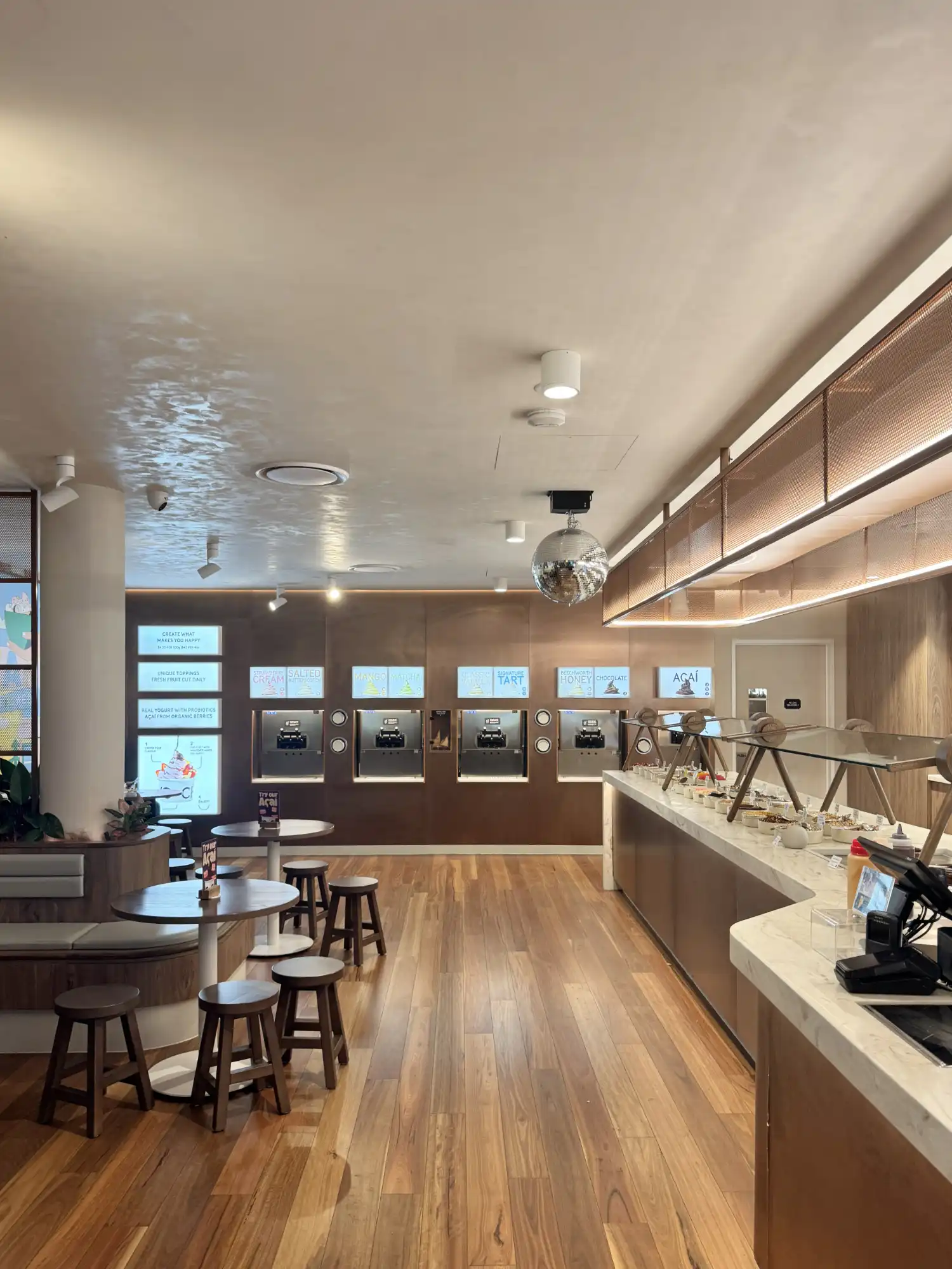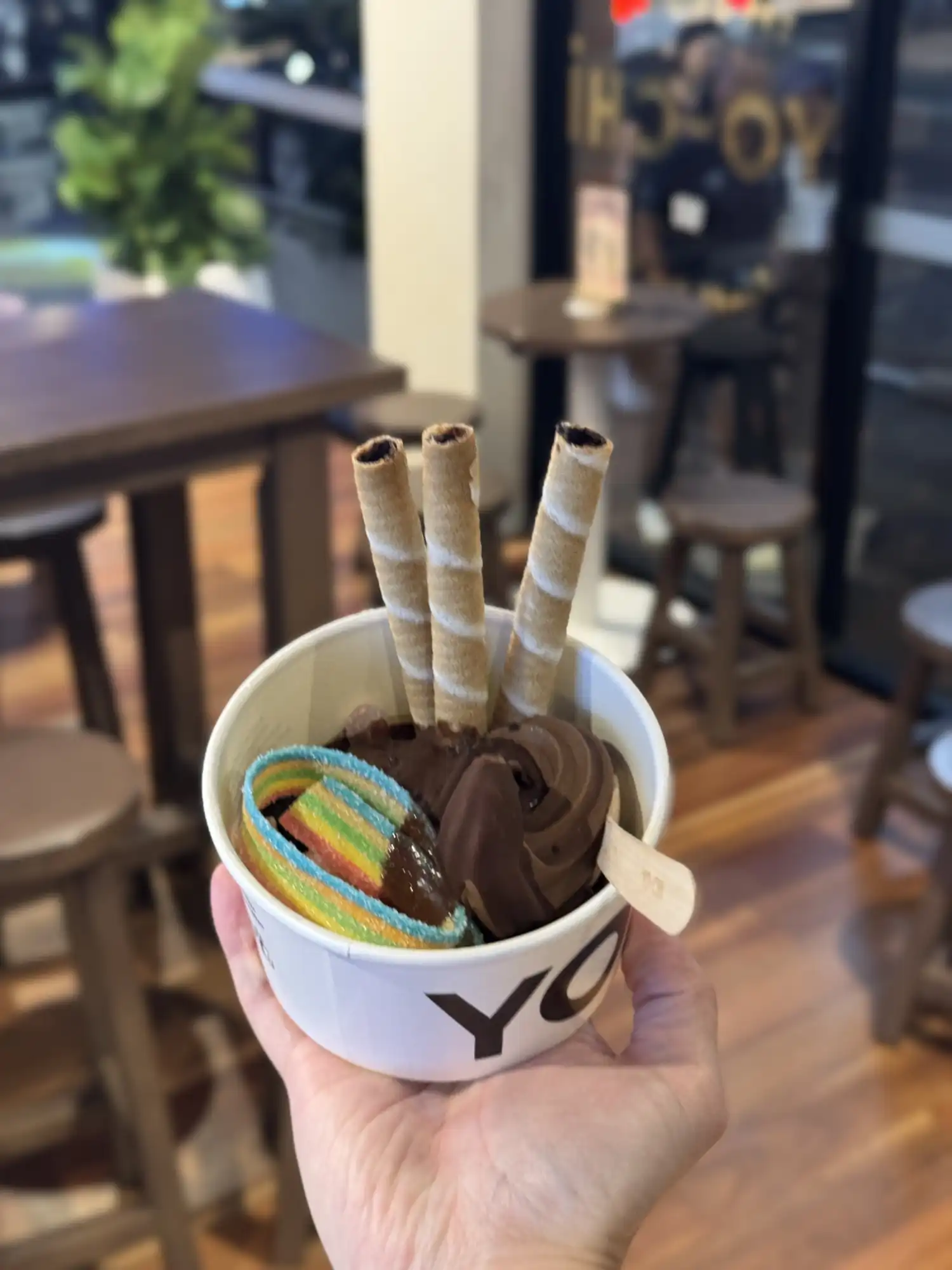 A froyo (frozen yoghurt) chain with vegan options. For the yoghurt, you'll find chocolate and acai as vegan flavours. And for toppings, you'll find a variety of fruits, cookie dough, Oreo, biscoff sauce and more.