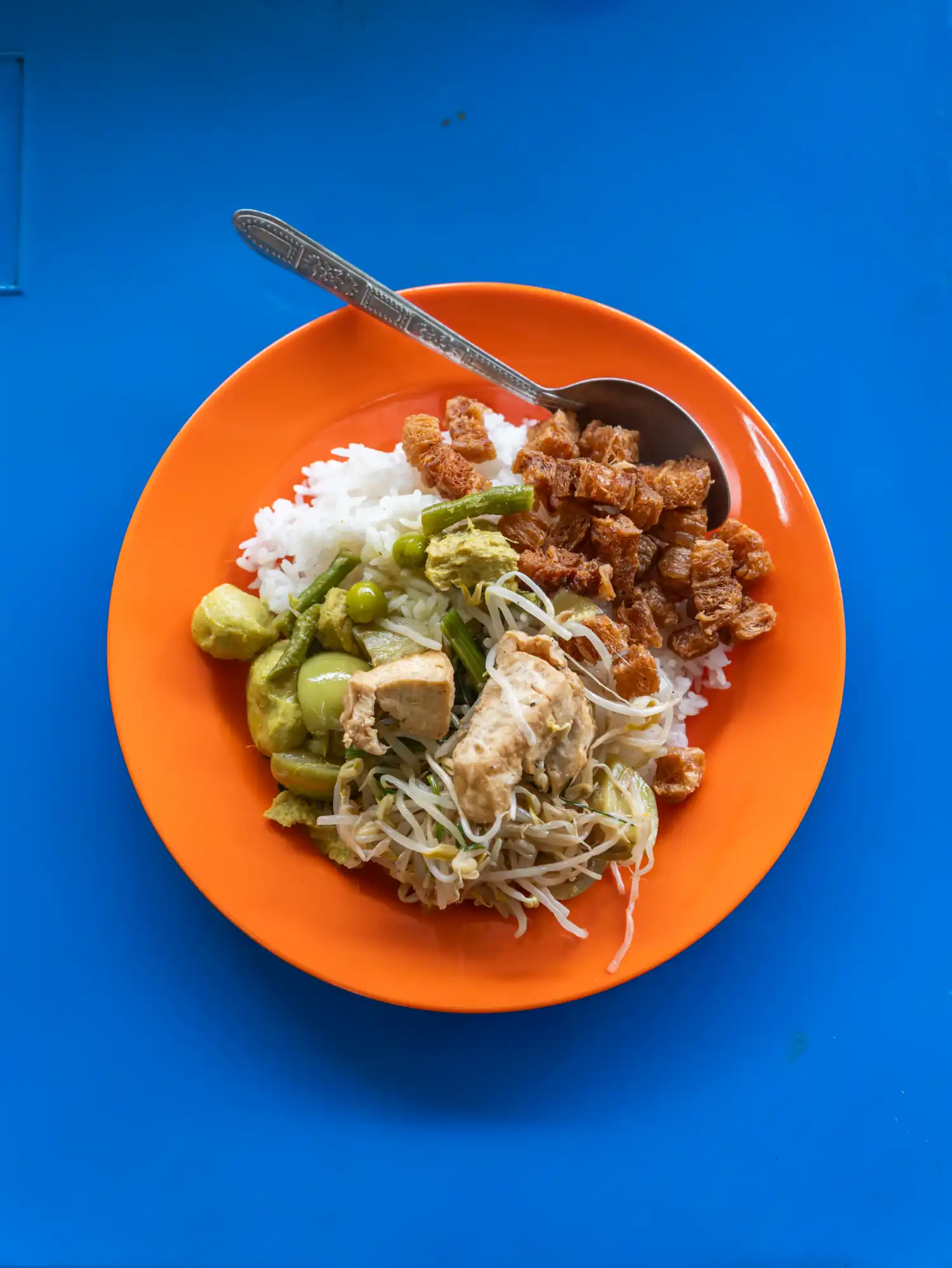They run on a self-serve setup where you point to what you want from a delicious spread of pre-made dishes. There's no English menu and staff may speak limited English, so learning a few essential Thai phrases would be helpful. All the food is vegan, and I went for a green curry with vegan sausages and tofu, along with some crispy soy protein. It wasn't fancy, but it was flavourful and incredible value.