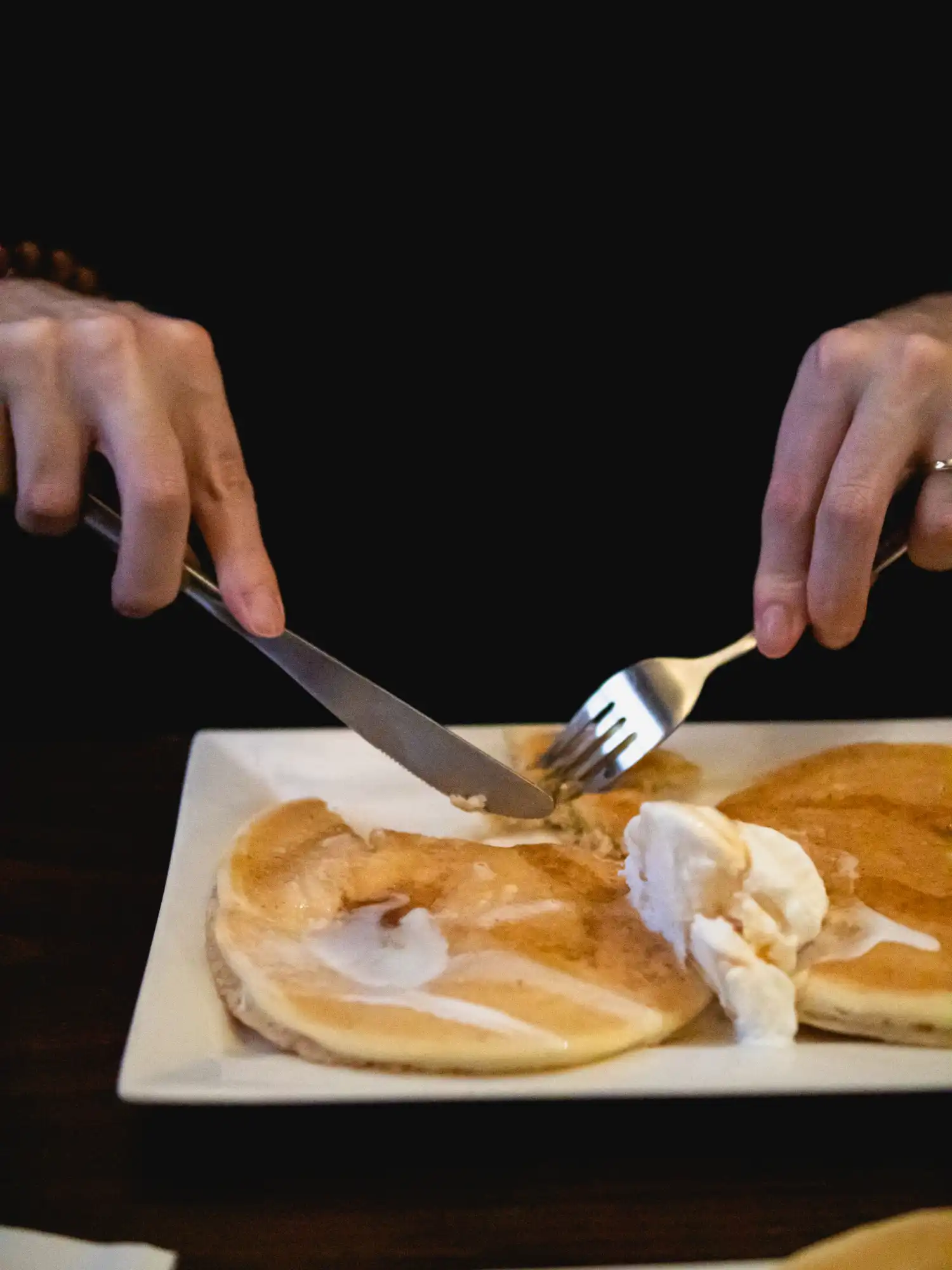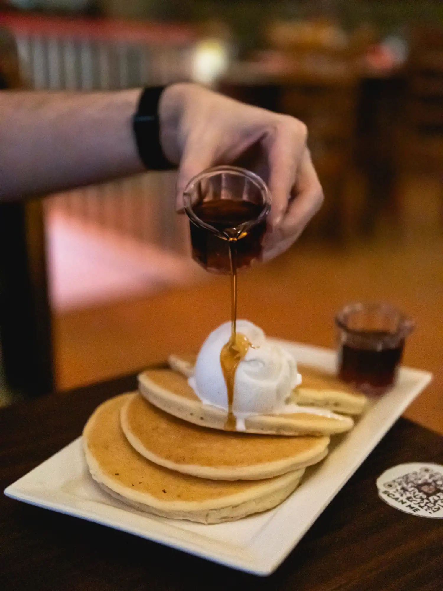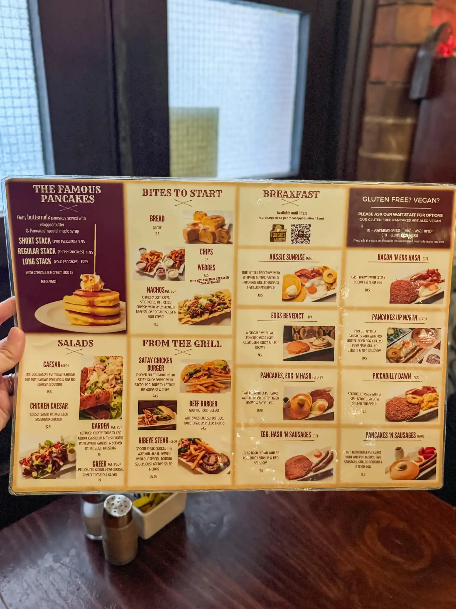 The menu includes several vegan choices, including a veganised version of their ‘buttermilk’ pancakes. While the pancakes themselves have a decent, nostalgic flavour, their texture can be a bit crumbly. Even though vegan pancakes are available, they don't currently offer vegan substitutes for butter or cream, and you'll be charged the same price for getting less. Other vegan options available include the black forest cherry, blueberry, and lemon & sugar pancakes.