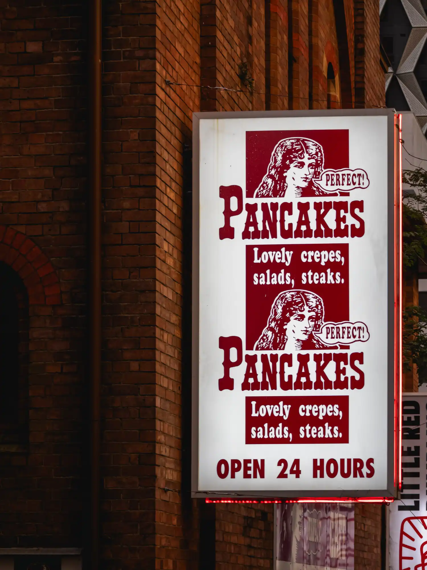 Perhaps its most famous feature is that it's open 24/7, making it the go-to destination if you find yourself craving vegan pancakes at 3am.